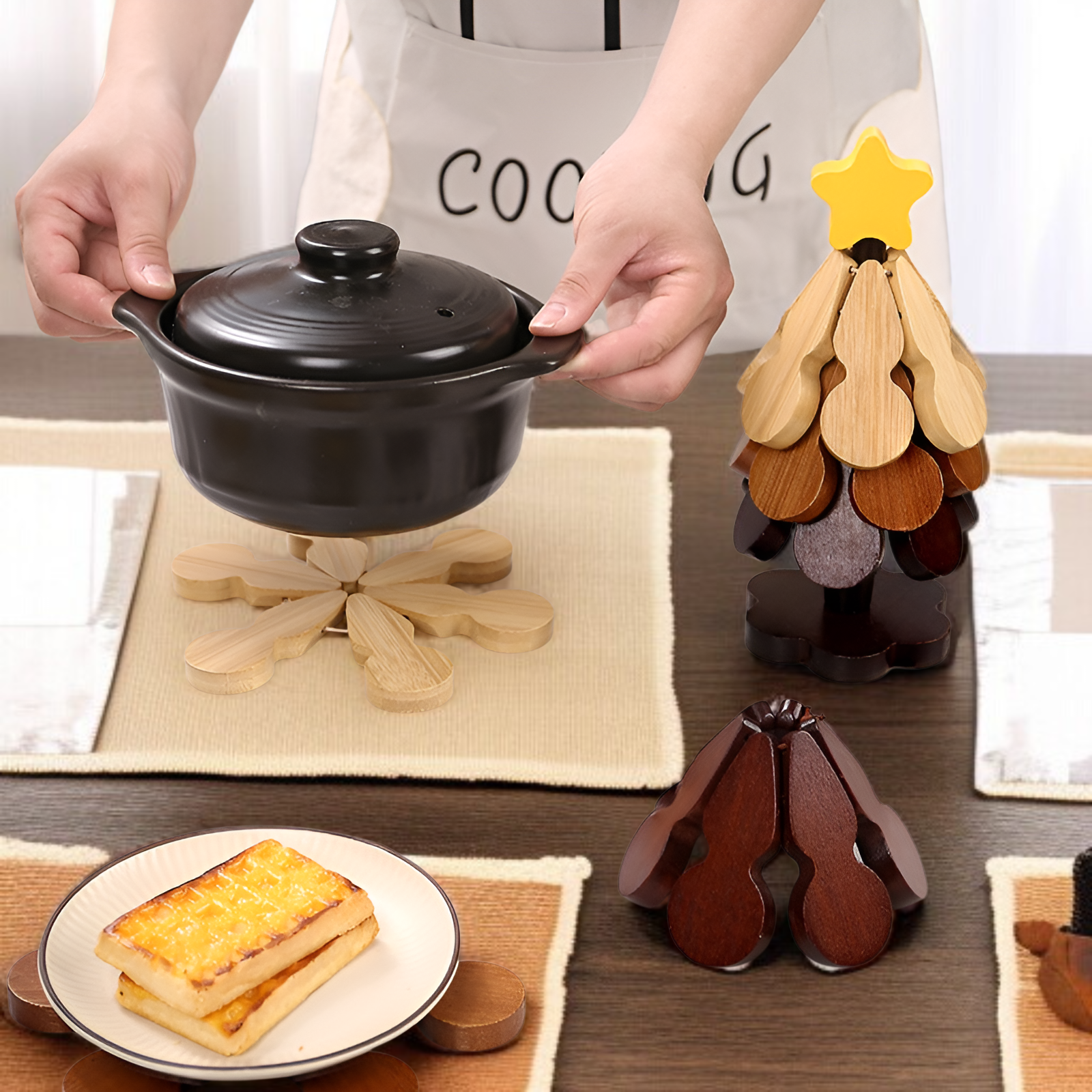 木の断熱パッド、やけど防止、高温耐性の家庭用ダイニングマット、高級クリスマスツリー、ひょうたん、ダイニングテーブル、ポット、ボウルマット、装飾品